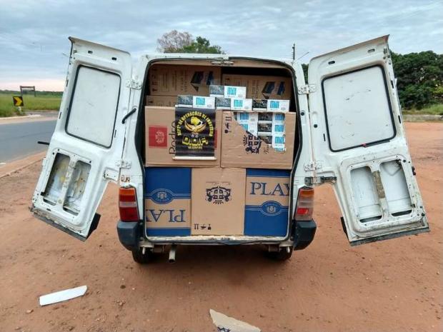Policiais do Departamento de Operações de Fronteira (DOF) apreenderam na madrugada desta quinta-feira (13), por volta das 4h40, um veículo Fiat Fiorino de cor branca transportando 1.850 pacotes de cigarros, de várias marcas contrabandeados do Paraguai e sem a documentação de regularidade fiscal.