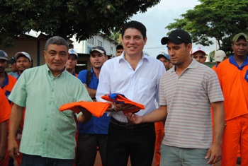 Para isso o prefeito Celso Vargas tem dado apoio aos funcionários da prefeitura que exercem a limpeza e manutenção dos bairros. Na manhã desta terça-feira, o prefeito entregou os uniformes novos para os trabalhadores da secretaria de Obras. A entrega aconteceu no pátio de obras da prefeitura.