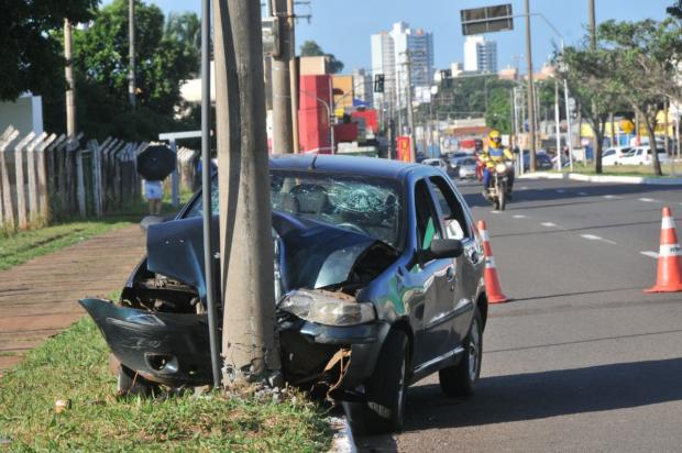 Militar perde controle da direção e bate carro em poste na Cônsul Assaf Trad