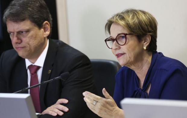 Os ministros Tarcísio Freitas, da Infraestrutura, e Tereza Cristina, da Agricultura - Antonio Cruz/ Agência Brasil