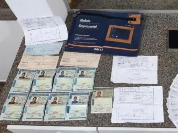 Os agentes voltaram ao local e recuperaram a pasta. Dentro dela foram encontrados vários cheques, requisições para desconto de cheques, oito CNH falsas, sendo quatro delas com fotos de um dos homens e outras quatro com fotos de outras pessoas. Com um dos suspeitos havia também R$ 11,2 mil em dinheiro.