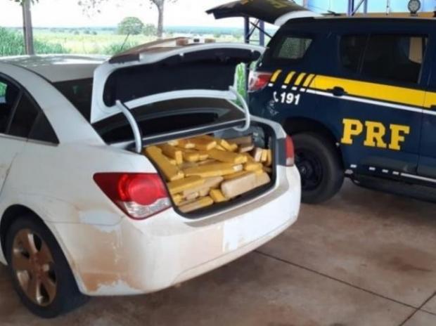 Veículo Cruze onde estavam os 514 tabletes de maconha. - Crédito: (Divulgação/PRF)