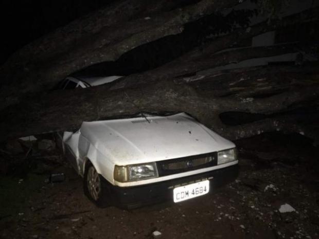 Árvore caída em cima de carro após temporal (Foto: BV News)