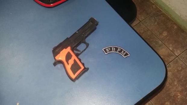 A Polícia Militar apreendeu na noite de terça-feira (30/4) um simulacro de arma de fogo tipo pistola que foi localizada num carro que estava com três pessoas. As equipes policiais informadas de que suspeitos num veículo com placas de Juazeiro (BA) realizavam furtos na cidade.