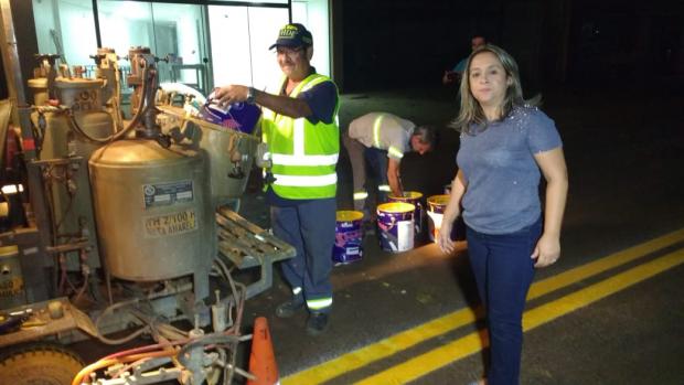 Os serviços de mudança e reforço na sinalização da Rua Monte Alegre, uma das principais e mais perigosas vias de Dourados, estão avançando. Na noite desta quarta-feira (1), a vereadora Lia Nogueira (PR) vistoriou um dos trechos que têm recebido a nova sinalização horizontal e, segundo a parlamentar, as mudanças fazem parte do projeto elaborado em conjunto com a Agetran (Agência Municipal de Transporte e Trânsito) e comissão de comerciantes e moradores da Monte Alegre.
