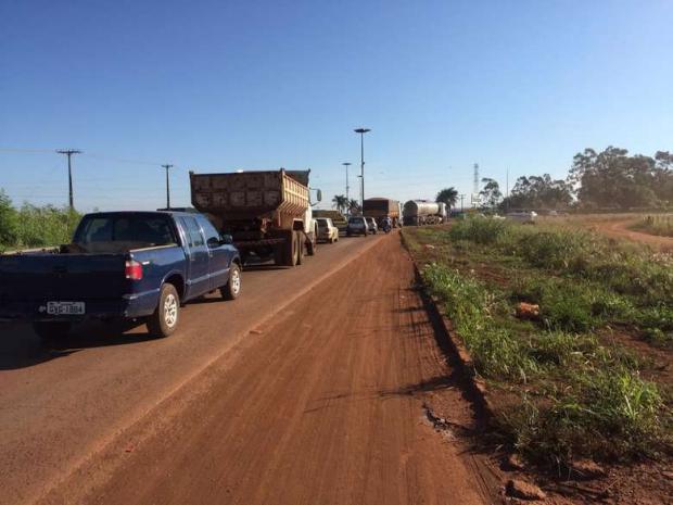 Trânsito lento no sentido Centro da MS-156 - Crédito: Vinícios Araújo/Dourados News