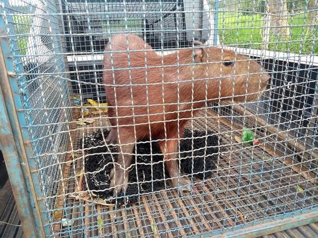 Os policiais foram acionados pelo dono do bar, após o animal entrar dentro do estabelecimento. A PMA foi ao local e capturou a capivara com o uso de uma rede, colocando-a em uma caixa de contenção. Como não apresentava ferimentos, ela foi solta em uma área de vegetação distante da cidade.