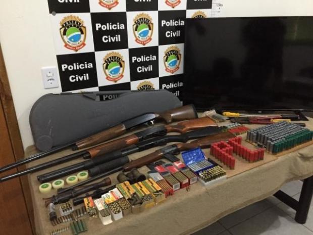 Após 10 dias de investigação, policiais civil de Paraíso das Águas e Cassilândia recuperaram um arsenal furtado de uma fazenda da região. Foram apreendidos nesta semana quatro espingardas, uma delas avaliada em R$ 25 mil, e mais de 850 munições.