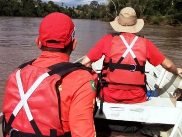 Militares do Corpo de Bombeiros durante buscas ao corpo da vítima no Rio Amamvaí (Foto: Divulgação)