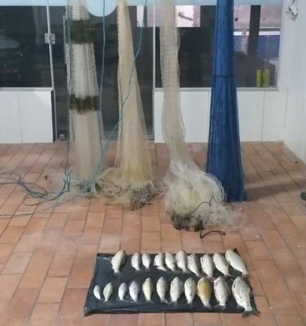 Policiais militares ambientais de Coxim flagraram no município de Pedro Gomes, na tarde de sábado no rio Taquari, no local conhecido como Cachoeira do Bananal (local proibido à pesca), dois homens que pescavam com tarrafas (petrecho proibido). Eles foram avistados nas imagens do drone e conseguiram fugir abandonando quatro tarrafas e 3 kg de pescado.
