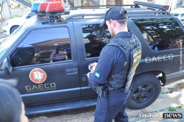 Policiais do Gaeco (Grupo de Atuação Especial de Combate ao Crime Organizado), cumprem mandados de prisão e busca e apreensão em duas cidades de Mato Grosso do Sul na manhã desta segunda-feira (8/7).