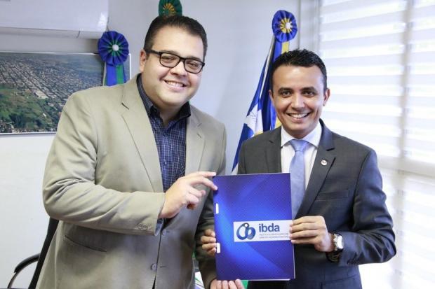 O presidente da IDAMS durante visita ao presidente da Câmara de Dourados, Alan Guedes (Foto: Thiago Morais)