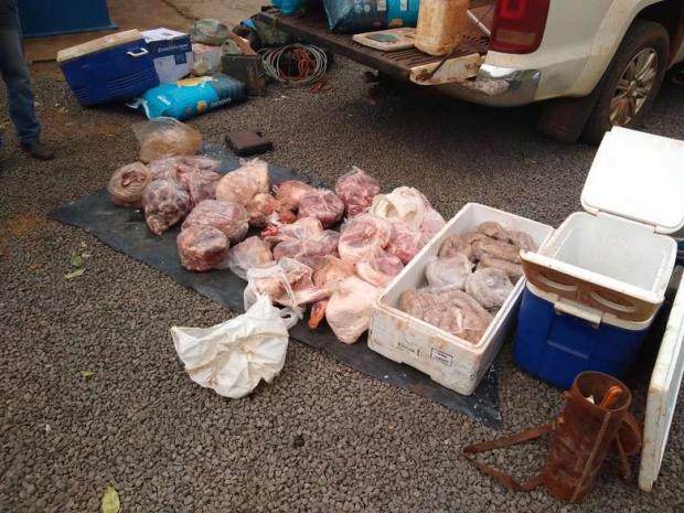 Em alguns pedaços da carne dos animais era possível verificar marcas de tiros de arma de fogo. O veículo, a carne e linguiça foram apreendidos.