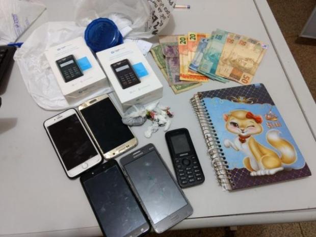 Dinheiro e celulares apreendidas na casa (Foto:Osvaldo Duarte/ Dourados News)