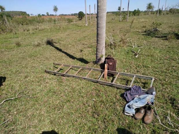 Ontem (29) no final da tarde, equipes que estavam em uma propriedade rural, no município de Ivinhema, orientando às pessoas sobre os problemas relativos ao tráfico e fazendo monitoramento de ninhos em várias árvores de bocaiúva da fazenda que continham ninhos, avistaram de uma estrada vicinal a cerca de 2 km, dois elementos com uma escada de alumínio subindo em árvores de bocaiúva para retirar os filhotes.
