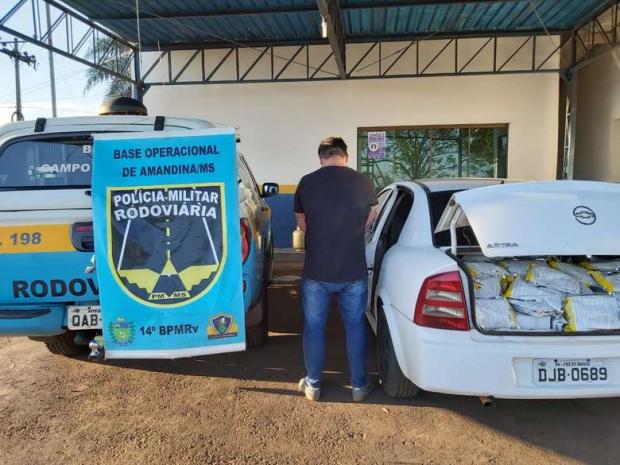 A prisão ocorreu enquanto Policiais Militares Rodoviários realizavam um policiamento ostensivo na BR-376, no Distrito de Amandina, em Ivinhema. Ao dar ordem de parada ao um veículo GM/Astra Milenium, com placas de Foz do Iguaçu, no Paraná, foi verificado que o motorista transportava o produto em cima do banco do passageiro e no porta malas.