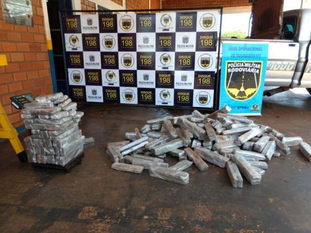 A maconha apreendida com um estudante de Medicina na manhã desta quarta-feira (16/10) totalizou 227,5 quilos, distribuídos em 272 tabletes. Na carroceria da Ford F-1000 abordada, os policiais militares rodoviários flagraram ainda 960 gramas de pasta base.