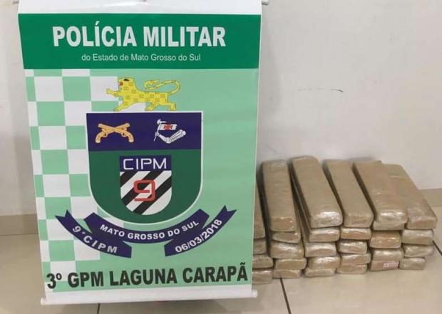 Com ela, encontraram 28 tabletes de maconha, totalizando 25 quilos do entorpecente.