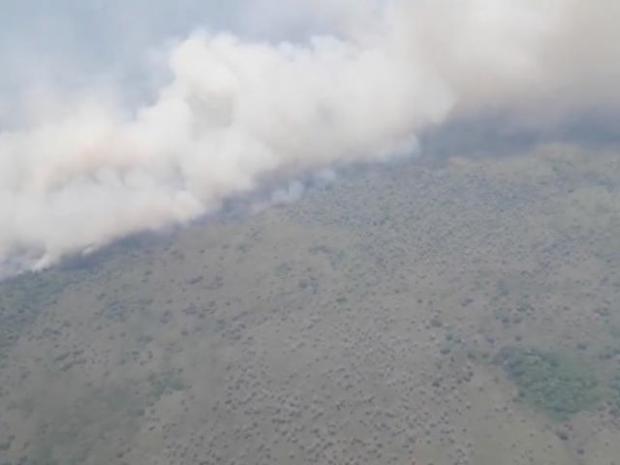 Faixa de incêndio se espalha pela região do Passo do Lontra, no Pantanal Sul-mato-grossense (Foto: Reprodução)