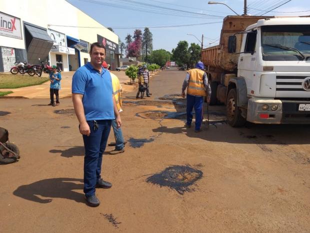 Carlito do Gás durante operação tapa-buracos (Foto: Assessoria)