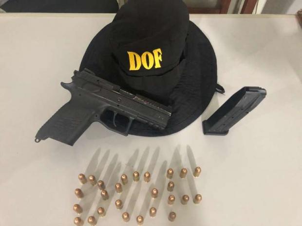 Flagrado por equipe do DOF (Departamento de Operações de Fronteira) portando pistola .380 com a numeração raspada e dois carregadores com 26 munições intactas, um homem de 40 anos acabou preso por não ter porte de arma.