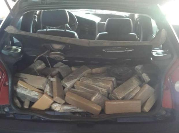 No veículo, foram encontrados sob os bancos e porta malas, 200 quilos de maconhas distribuídos em 231 tabletes.