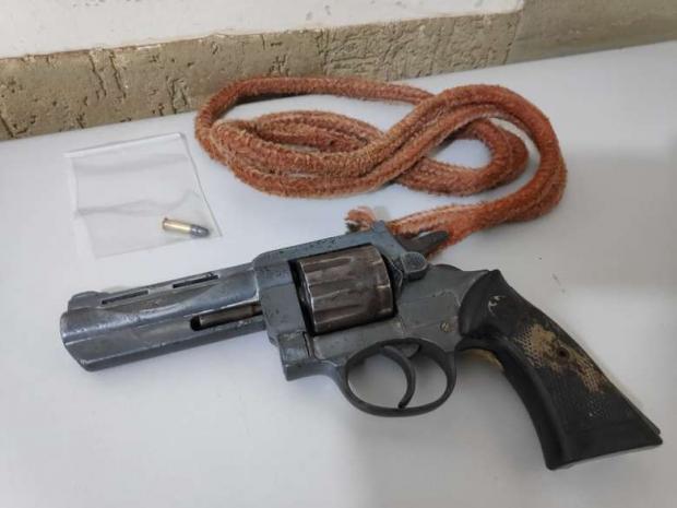 Arma e corda encontradas com suspeito de roubo - Crédito: Osvaldo Duarte/Dourados News