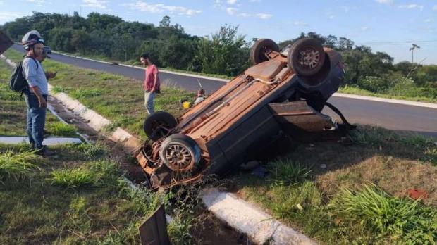 Acidente envolvendo dois veículos resultou num carro capotado na manhã desta quinta-feira (26) no local conhecido como baixada do Córrego Esperança, em Nova Andradina. O caso ocorreu na MS-134, logo após o motorista levar uma 'fechada' de outro condutor.