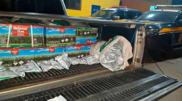 Ele transportava, na carroceria do veículo, várias embalagens de agrotóxicos, totalizando 460 Kg do contrabando.