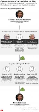 Entenda a suspeita de 'rachadinha' na Alerj envolvendo Flávio Bolsonaro quando era deputado estadual no Rio de Janeiro e o ex-assessor Fabrício Queiroz — Foto: Rodrigo Sanches e Juliane Souza/G1