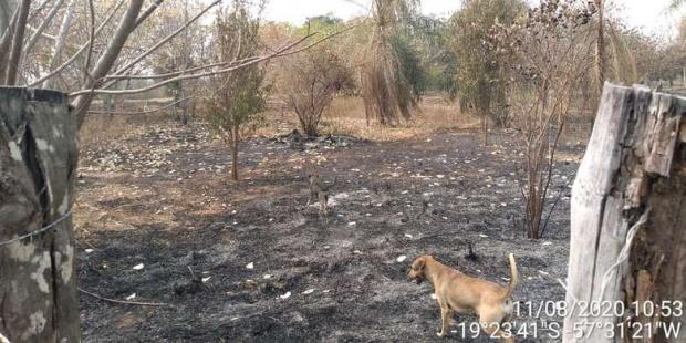 Policiais Militares Ambientais de Corumbá receberam denúncias de um incêndio que ocorrera no assentamento São Gabriel, atingindo cinco lotes.