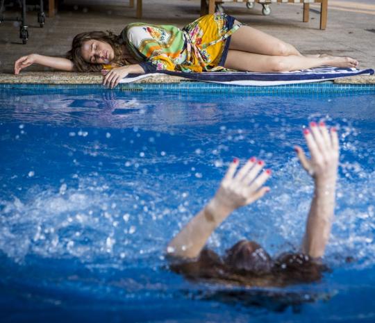 Mais tarde, Sofia prova o drinque da irmã e finge passar mal. Eliza se preocupa e tenta ajudá-la, mas Sofia a joga na piscina e observa o desespero da irmã se debatendo na água. 😲 Como a modelo não sabe nadar, qualquer segundo pode ser precioso para se manter viva!