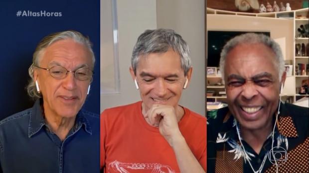 Caetano Veloso e Gilberto Gil se reencontram no 'Altas Horas' e relembram período presos na ditadura — Foto: Globo