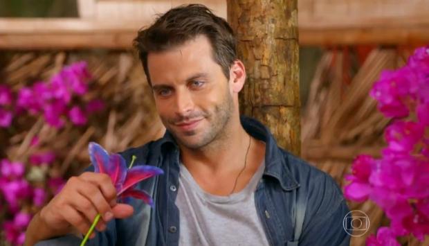 Cassiano (Henri Castelli) espera por Ester (Grazi Massafera) na cabana - 'Flor do Caribe' — Foto: Globo