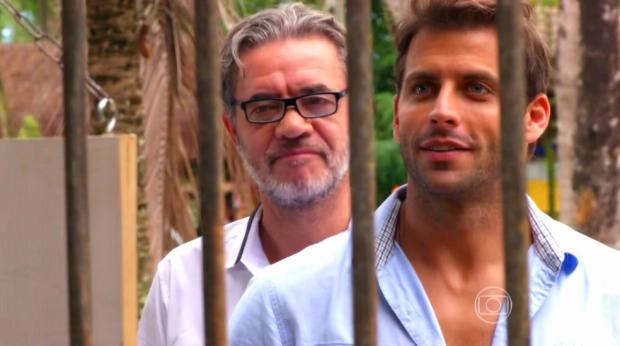 Cassiano (Henri Castelli) e Duque (Jean Pierre Noher) recomeçam a vida e compram bar que se chamará 'Flor do Caribe' — Foto: Globo
