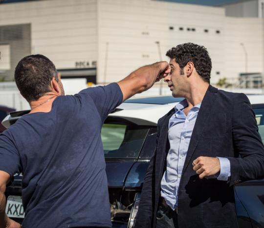 Apolo (Malvino Salvador) agride Beto (João Baldasserini) depois de discussão por causa de uma batida de carro - 'Haja Coração' - Tv Globo — Foto: Fabiano Battaglin/Gshow