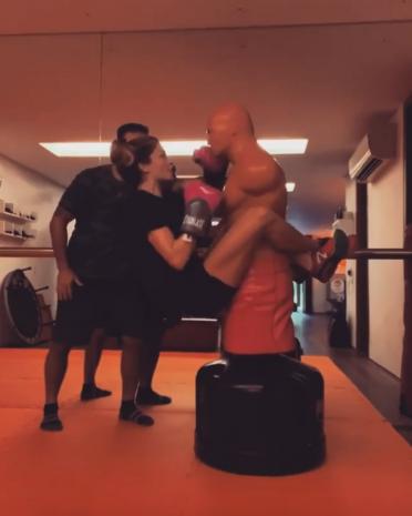 Grazi Massafera acordou animada e cheia de energia e postou um vídeo com sua rotina de treinos de boxe, nesta terça-feira,10/1. De top e short, a atriz mostrou que sua a camisa para ter esse corpão em forma. Entre socos, chutes e muitos exercícios aeróbicos, ela brincou marcando seu personal trainer: