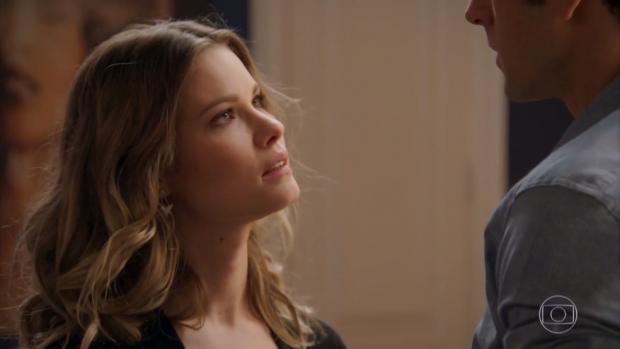 Jéssica (Karen Junqueira) estranha o comportamento de Felipe (Marcos Pitombo) - 'Haja Coração' — Foto: Globo