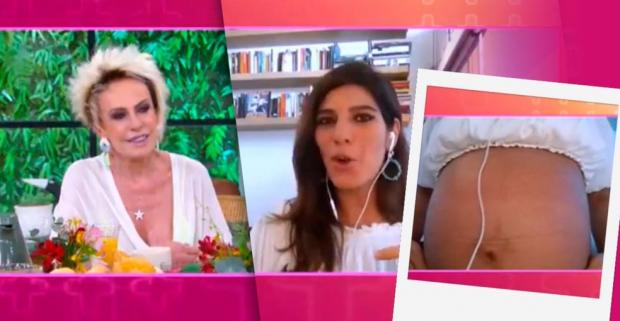 Andréia Sadi mostra o barrigão de gêmeos para Ana Maria Braga — Foto: Fotomontagem / Gshow