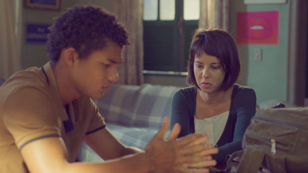 Ravi (Juan Paiva) revela a Lara (Andréia Horta) verdade sobre morte de Christian em 'Um Lugar ao Sol' — Foto: Globo