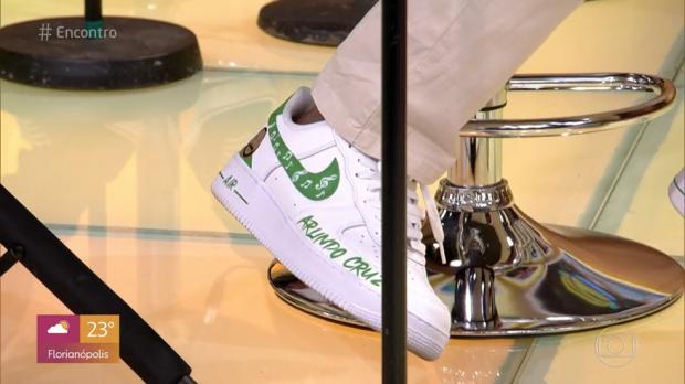 No "Encontro" desta quarta-feira, 24/11, Arlindinho participou do programa usando um tênis em homenagem ao pai. Fátima Bernardes chamou atenção para o sapato que tem o nome e a foto de Arlindo Cruz.