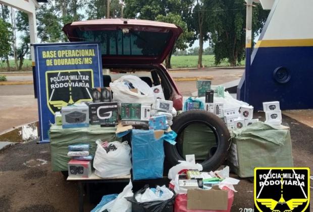 A apreensão ocorreu por volta das 15h50, quando a equipe da Base Operacional de Dourados, da Polícia Militar Rodoviária, que realizava patrulhamento na Rodovia MS 379, município de Dourados, efetuou abordagem a um veículo VW/Gol Fox, de cor vermelha, localizando no mesmo uma carga ilegal de contrabando e descaminho, de pneus, cigarros eletrônicos, smartphones e diversos eletrônicos.