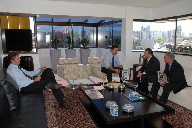 O presidente da Fiems, Sérgio Longen, reuniu-se, na manhã desta sexta-feira (2/09), no Edifício Casa da Indústria, em Campo Grande, com o presidente da International Paper na América Latina, Jean-Michel Ribieras, e com o gerente de sustentabilidade e relações institucionais da IP em Três Lagoas, Luís Fernando Madella Athayde, para apresentar o formato da Expo-MS Industrial 2012.