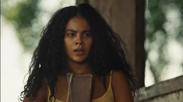 Muda (Bella Campos) revelou que não é muda e voltou a falar em 'Pantanal'' — Foto: Globo