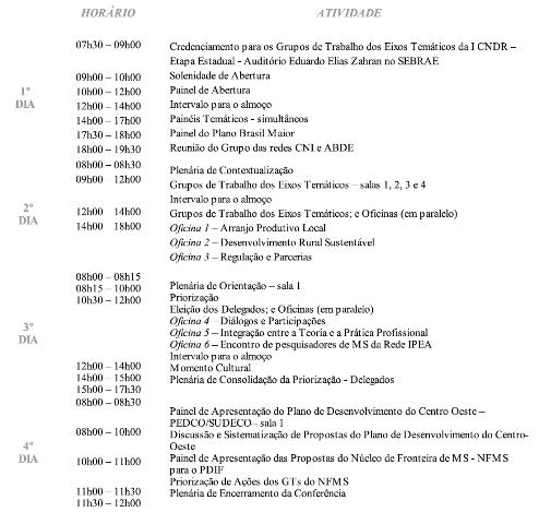 De acordo com a Coordenadora de Pesquisas, Planos, Projetos e Monitoramento da Semac, Zaida de Andrade Lopes Godoy, a Conferência tem a finalidade de construir um espaço de deliberação, divulgação, difusão e diálogo federativo e social acerca de temas e políticas de Desenvolvimento Regional, com base no Plano de Desenvolvimento Regional de Mato Grosso do Sul (PDR 2010 – 2030).