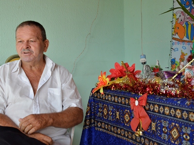 O presépio decorado com muitas fitas coloridas, montado logo na entrada da casa, demonstra que o mestre da Folia de Reis “Os Castilhos”, Waldemar Martins Castilho, 71, é devoto dos Três Reis Magos. Paciente, ele contou à equipe de reportagem do Jornal do Povo que está à frente do grupo há 48 anos. Começou ainda menino quando ia aos festejos junto com o pai. “Somos seis irmãos, mas somente eu dei continuidade à tradição, que se iniciou com meu avô”, disse.
