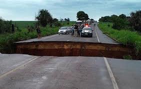 Parte do asfalto da BR-163 não resistiu às chuvas desse final de semana e cedeu abrindo uma enorme cratera na pista. O rompimento ocorreu na manhã deste sábado (26) ocasionando filas de congestionamento na via, principalmente de carretas que escoam a produção agrícola e outros produtos.