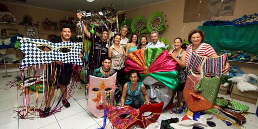 Foram ao barracão onde estão sendo confeccionadas as fantasias da corte da Folia (Rei Momo, Rainha e princesas) e os carnavalescos manifestaram sua alegria com o vigoroso envolvimento da comunidade.