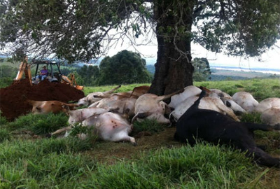 Ainda segundo Vilela, o raio matou um touro, um garrote e 11 vacas, que estavam prenhas. Ele estima que teve perda de aproximadamente R$ 20 mil.