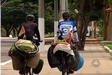 Ciclistas poloneses há três anos na estrada passam por Corumbá, MS